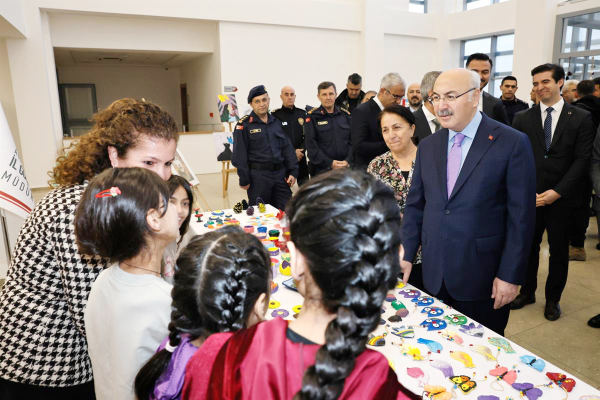 Gerçekleştirdiği ziyarette merkezde barınan yabancıların sosyal, kültürel ve sanatsal etkinlikler kapsamında el sanatları, resim ve çocuk gelişimi kurslarında ürettikleri el emeği ürünlerden oluşan sergiyi gezen Vali Köşger, yetkililerden kursiyerlerin çalışmalarına ilişkin bilgi aldı.