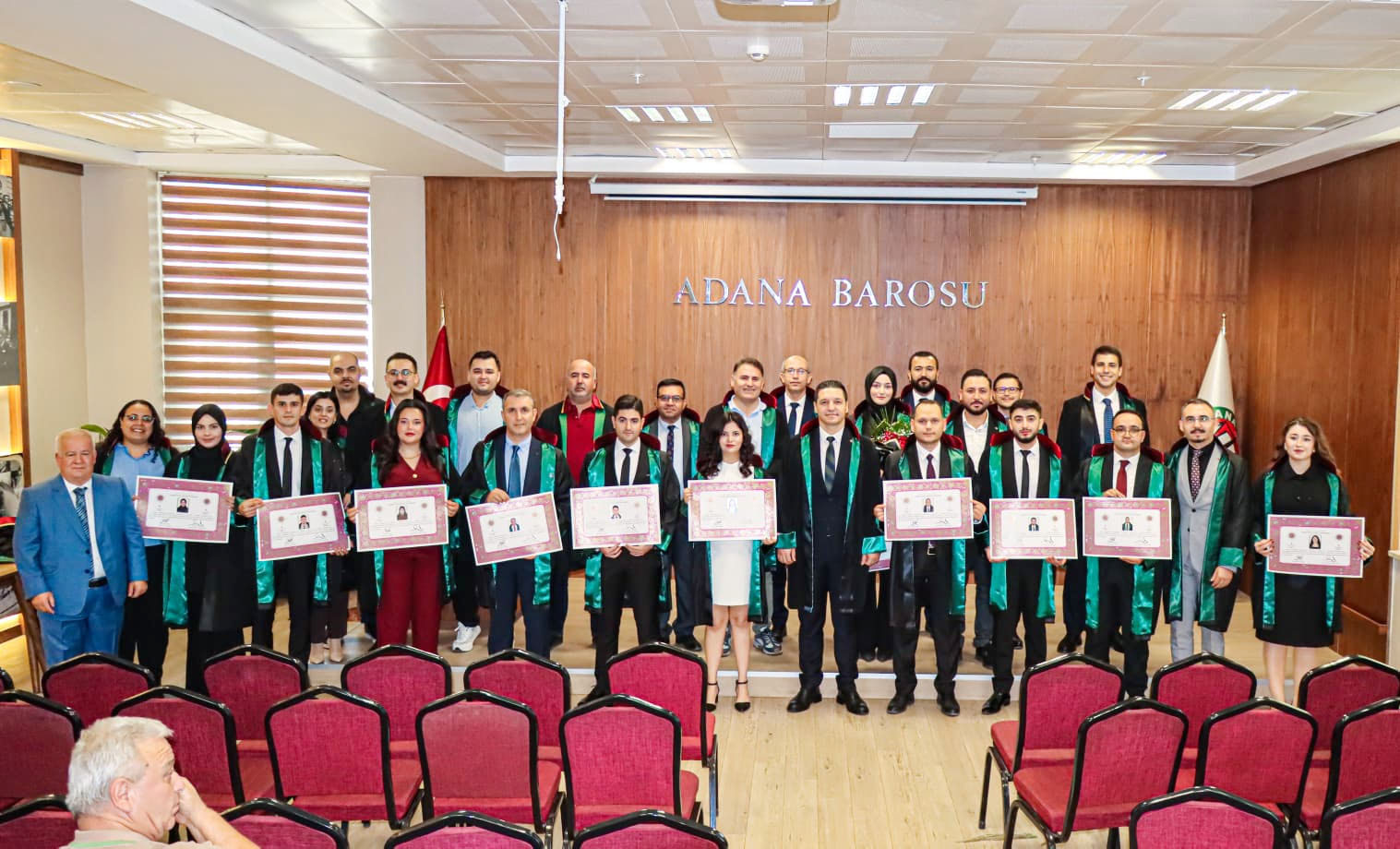 (HABER MERKEZİ)-Adana Barosu’nda staj dönemlerini başarıyla tamamlayan Muhammed Furkan Cenger, Hüseyin Tunahan Yaşar, Melisa Altunkanat, Furkan Özcan, Hatice Aybike Üngör, Oktay Ayaşan, Serkan Salmanlar, Zeynep Buse Gümüş, Ramazan Azim Okyay, Gökçe Hilal Yazğan, Seçil Ilgın, Ahmet Alperen Bolat, Ahmet Batıkan Şahin ve Zeynep Ata Ersoy için ruhsat töreni düzenlendi