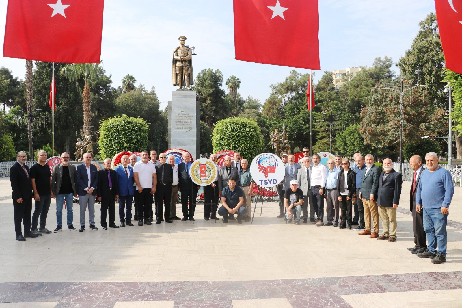 Yapılan konuşmanın ardından ÇGC Başkanı Cafer Esendemir, TSYD Adana Şube Başkanı A.Engin Kanber, ÇGC Kurucu Üyeleri Vahap Ünkat, Semir Yalçın, Bilal Tipi ve Hürriyet Gazetesi Bölge Müdürü Erdal Fernergiz tarafından Atatürk Anıtı’na çelenk konuldu.