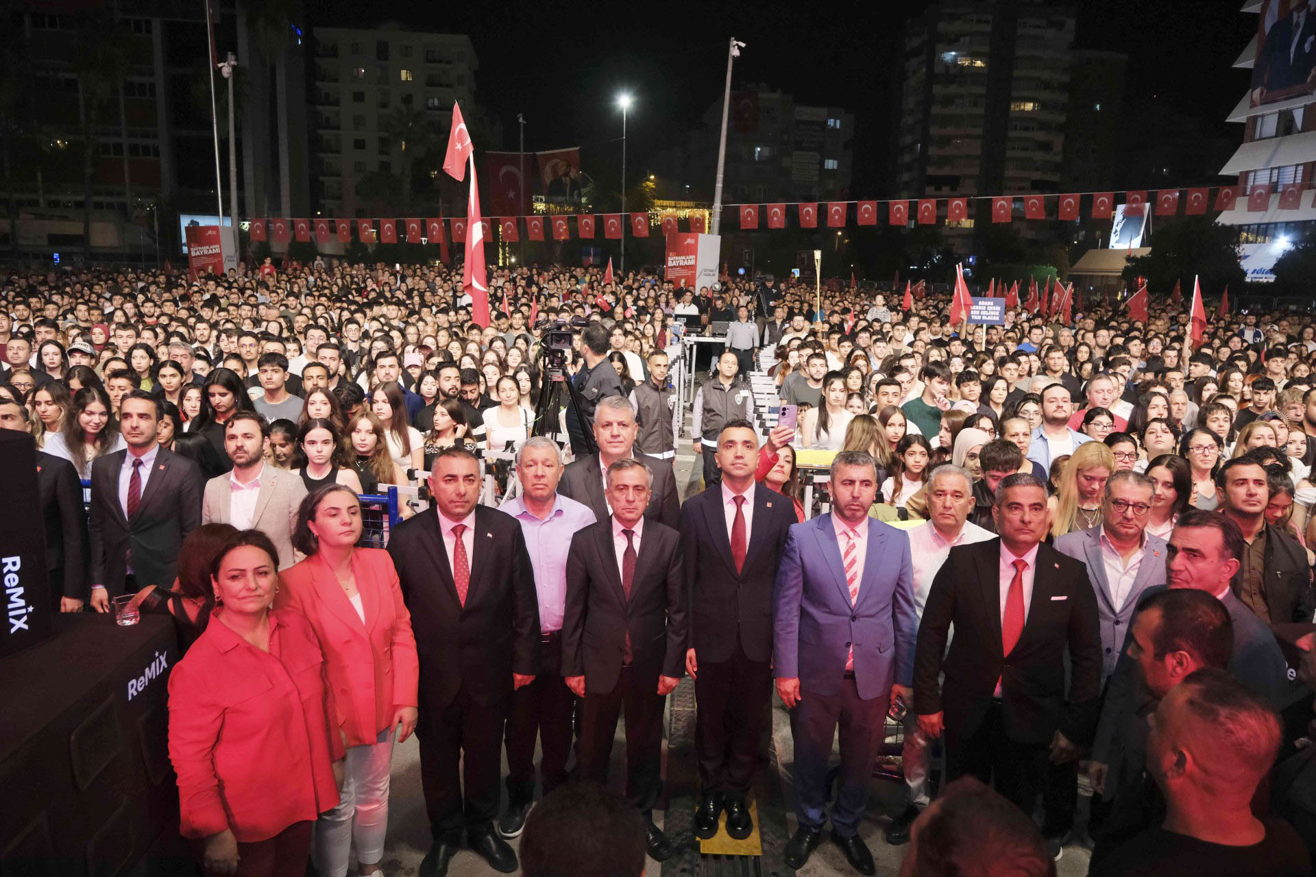 Kortejde protokol; “İlelebet Cumhuriyet” yazılı pankart taşıdı. Atatürk ve Ziyapaşa bulvarları kalabalık kortejin muhteşem görüntülerine sahne olurken, Uğur Mumcu Meydanı’nda toplanan Adanalılar, 29 Ekim’i, sanatçı Güneş’in verdiği konserle kutladı.