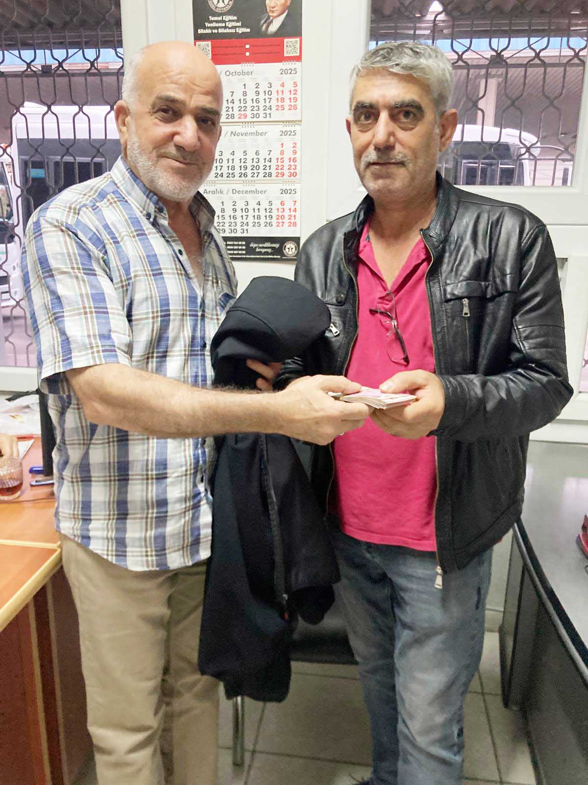 Kooperatif Yönetim Kurulu Üyesi Ali Petekkaya, yapılan titiz incelemenin ardından montu ve içindeki parayı Şerif İzol’ün babası Celal İzol’a teslim etti.