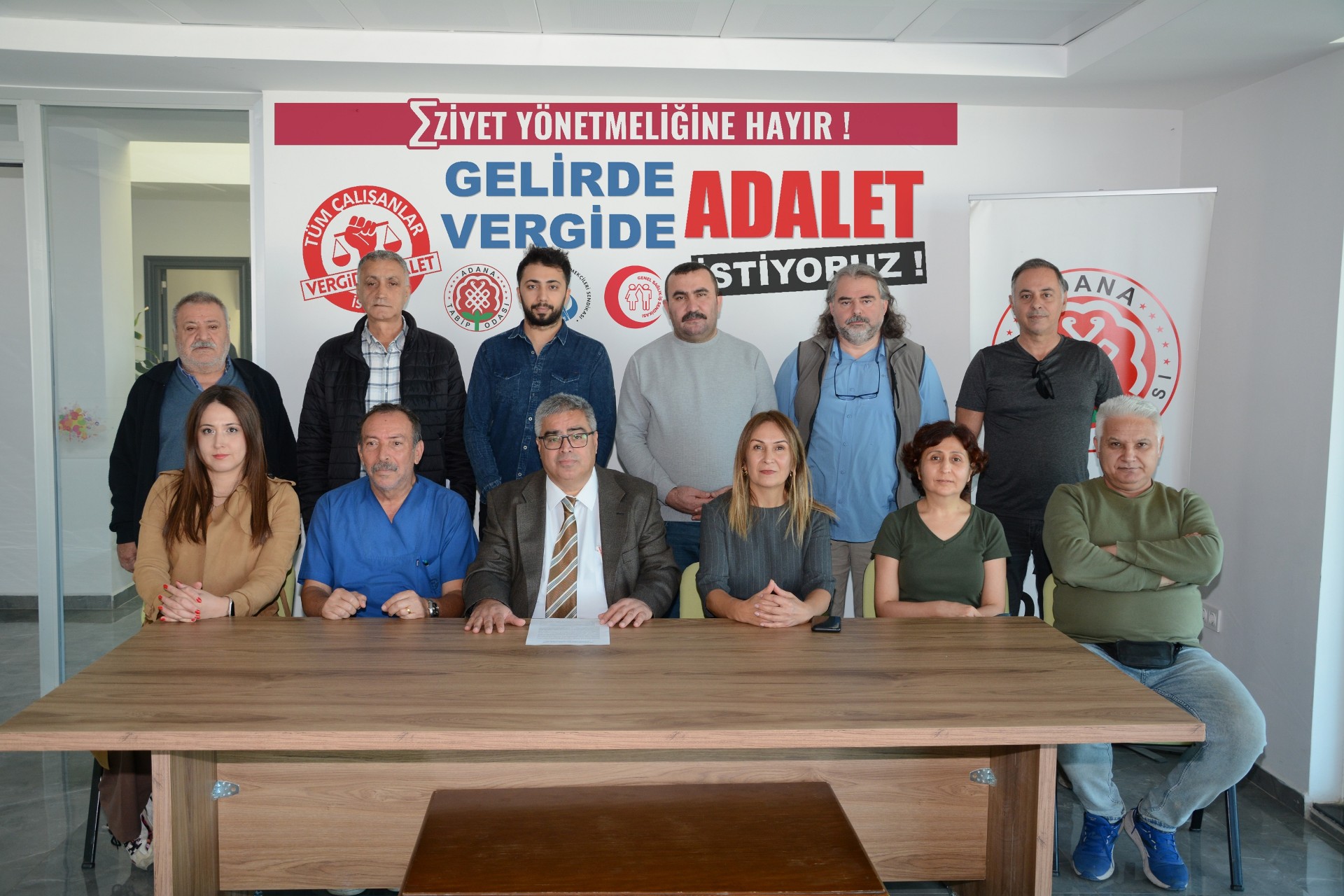 (HABER MERKEZİ)-Adana Tabip Odası, SES ve Genel Sağlık İş yönetici ve üyeleri Vergide-Gelirde Adalet ve İnsanca Yaşam için seslerini yeniden yükseltiyorlar.