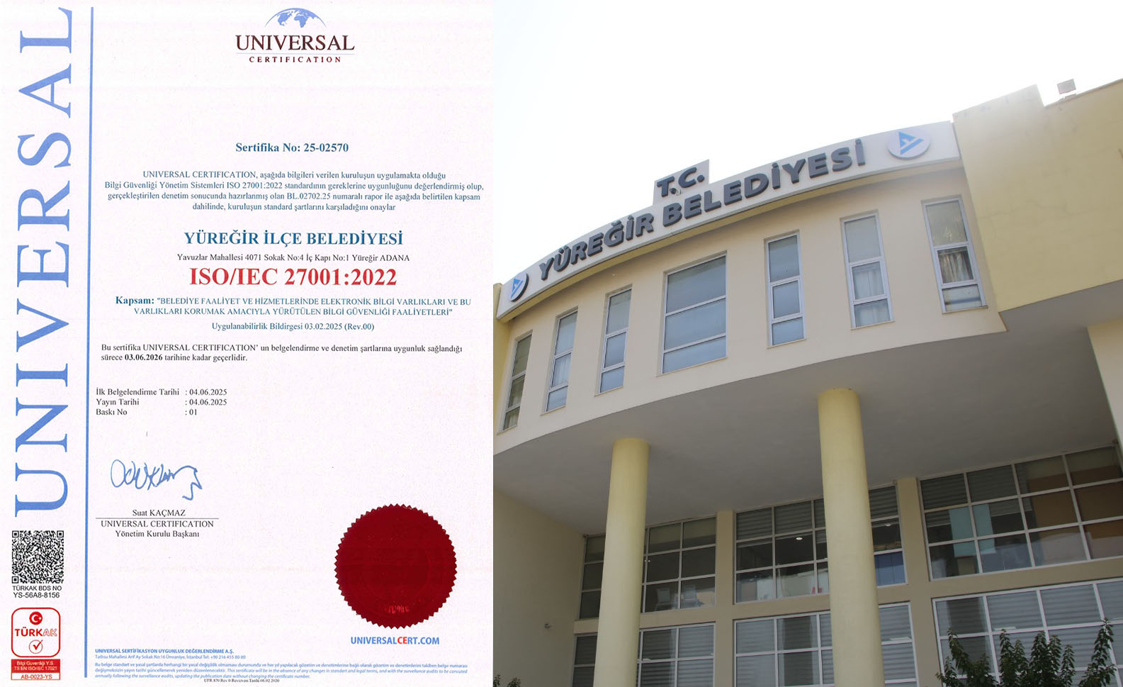 (HABER MERKEZİ)-Yüreğir Belediyesi, bilgi güvenliği alanında önemli bir başarıya imza atarak ISO/IEC 27001 Bilgi Güvenliği Yönetim Sistemi belgesini almaya hak kazanırken, bu belge, belediyenin bilgi varlıklarını koruma konusunda uluslararası standartlara uygunluğunu resmen belgeliyor.