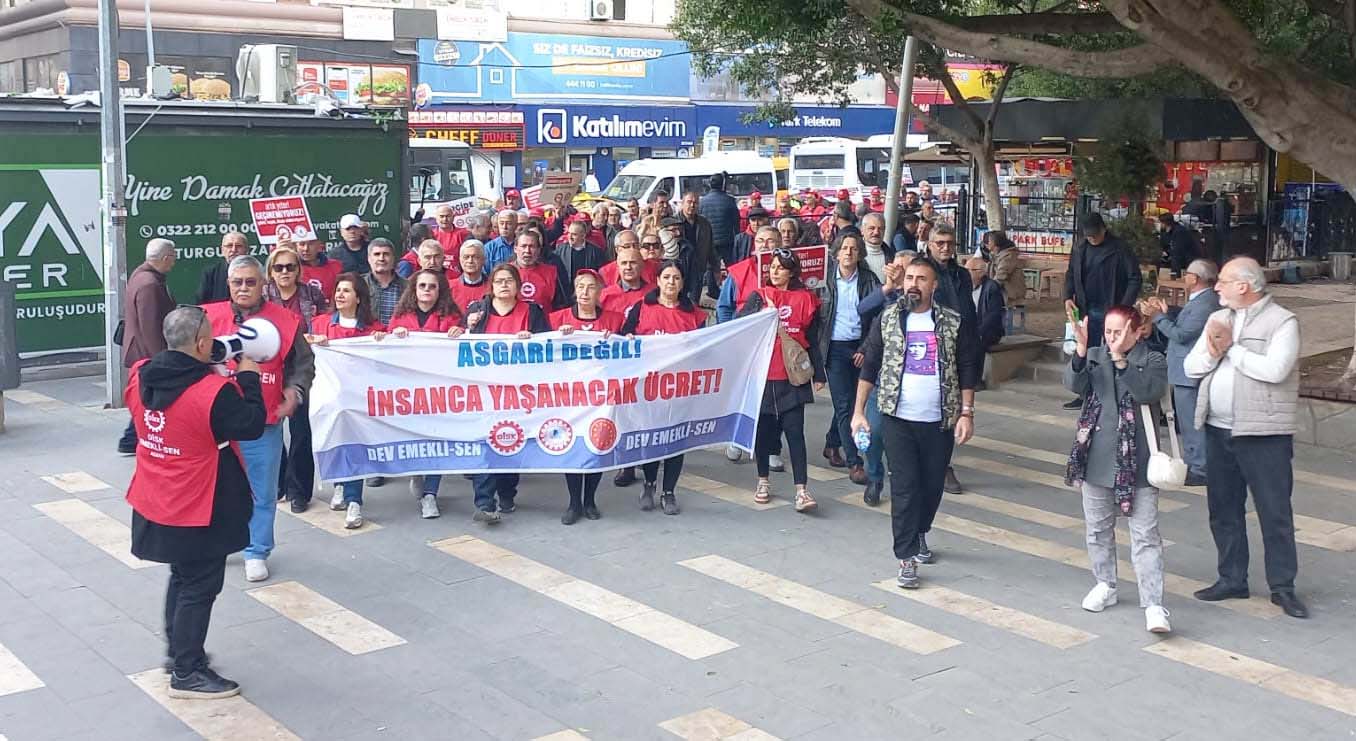 Adana’da yüzlerce emekli, insanca yaşam talebiyle sokaklara indi. Emekli sendikaları, 2026 bütçesinin emeklileri ve emekçileri yok saydığına dikkat çekerek, “Haklarımızı mücadeleyle alacağız” mesajı verdiler.